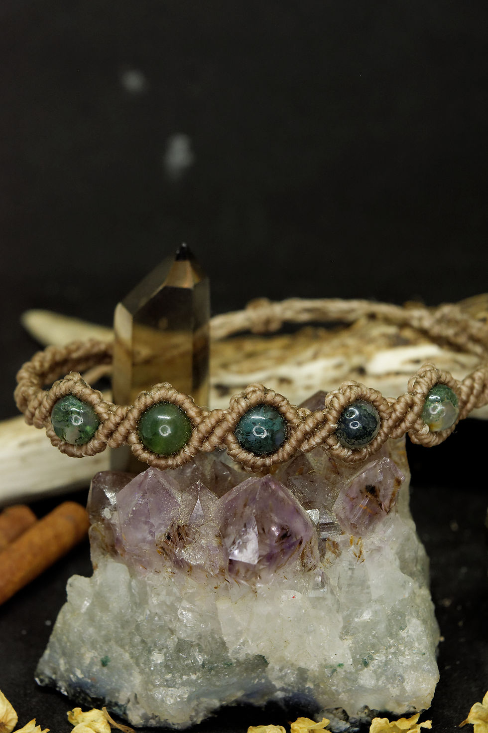C'est la pierre des nouveaux commencements qui écarte les blocages, et apporte l'abondance. L'Agate Mousse permet de trouver l'équilibre entre les intuitions et la réflexion. Elle aspire au respect de soi, à la confiance en soi et en les autres. Cette pierre laisse aller les peurs et le stress, en laissant place à la positivité de la personnalité.